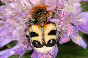 Pinselkäfer Trichius fasciatus 3 Bilder |  Zottiger Rosenkäfer Tropinota hirta 2 Bilder |  Stolperkäfer Valgus hemipterus 3 Bilder |