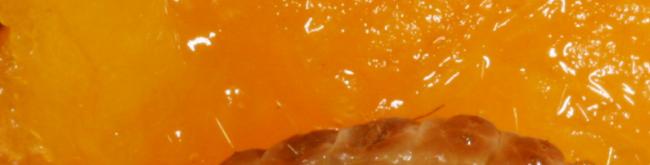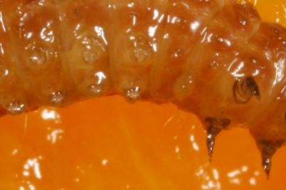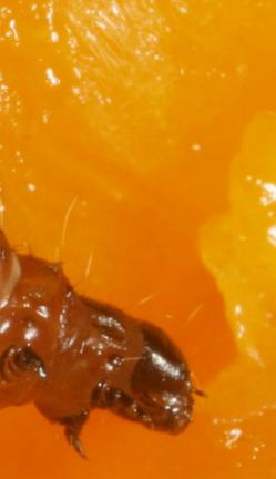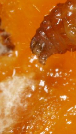 Raupe in gekauftem Pfirsich · Fundort unbekannt,