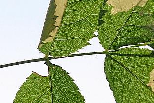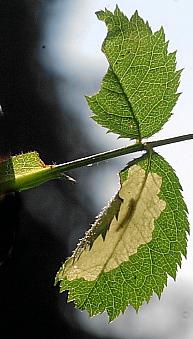 Imago | Raupe an Wildrose | Fraßmine an Wildrose | Minen an Wildrose | Mine an Wildrose | Mine mit Raupe an Wildrose |