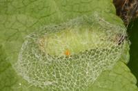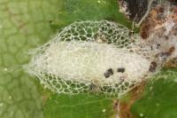 Imago | Raupe an Weißdorn | Raupe beim Einspinnen | Raupe in Blattumschlag | Kokon |