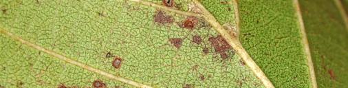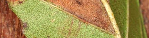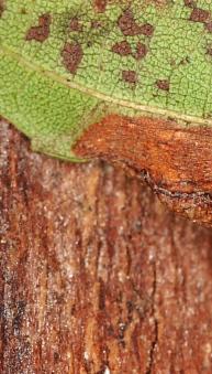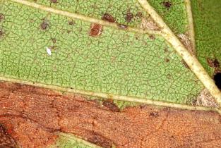 Mine in Schwarzerle, Blattunterseite
