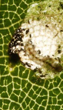 Raupe | Vorpuppe | Larvensäcke | Raupe im Larvensack | Sackwechsel | neuer Sack | Haselblatt mit Sackausschnitten | Birkenblatt mit Minen | Birkenblatt im Durchlicht mit Raupen | Raupen im Durchlicht | Birkenblatt mit Larvensack |