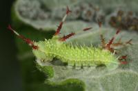 Imago | Imago | Imago | Männchen, Zuchttier | Weibchen, Zuchttier | Männchen, Unterseite | Imago, Zuchttier | Imago, Zuchttier | Imago, Zuchttier | Flügelausschnitt Weibchen | Fühler Männchen | Fühler Weibchen | Flügel nah | Ei, leg. Sven Schönebaum | Jungraupe | Jungraupe | Jungraupe | Raupe | Raupe, Ausschnitt | erwachsene Raupe | erwachsene Raupe |