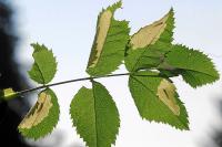 Imago | Raupe an Wildrose | Fraßmine an Wildrose | Minen an Wildrose | Mine an Wildrose | Mine mit Raupe an Wildrose |