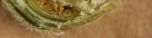 durch Gallmilben verursachte Missbildung an Haselknospen | durch Gallmilben verursachte Missbildung an Haselknospen | aufgeschnittene Knospe | aufgeschnittene Knospe mit Milbenlarven