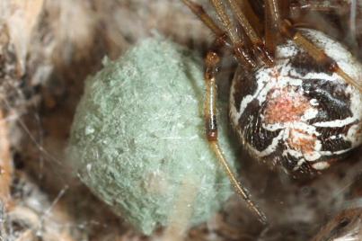 Weibchen mit Eikokon | Weibchen mit Jungspinnen