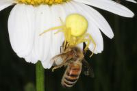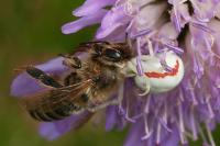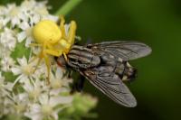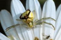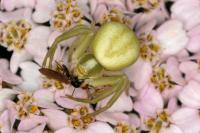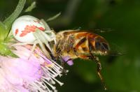 Weibchen, gelbe Form | subadult, weiße Form mit Beute | Weibchen, mit Beute | Weibchen, gelbe Form mit Fliegenbeute | Weibchen, weiße Form mit Schwebfliegenbeute | Weibchen, weiße Form | Weibchen, weiße Form mit Honigbiene | Weibchen, weiße Form mit Fliegenbeute | Weibchen, weiße Form mit Schmetterlingsbeute | Männchen | Pärchen