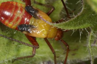 Imago | Imago | Larve, Zuchttier | Larve, Zuchttier | Larve an Hain-Wachtelweizen | Larve an Hain-Wachtelweizen | Imago, frisch gehäutet | Imago, noch nicht ganz ausgefärbt |